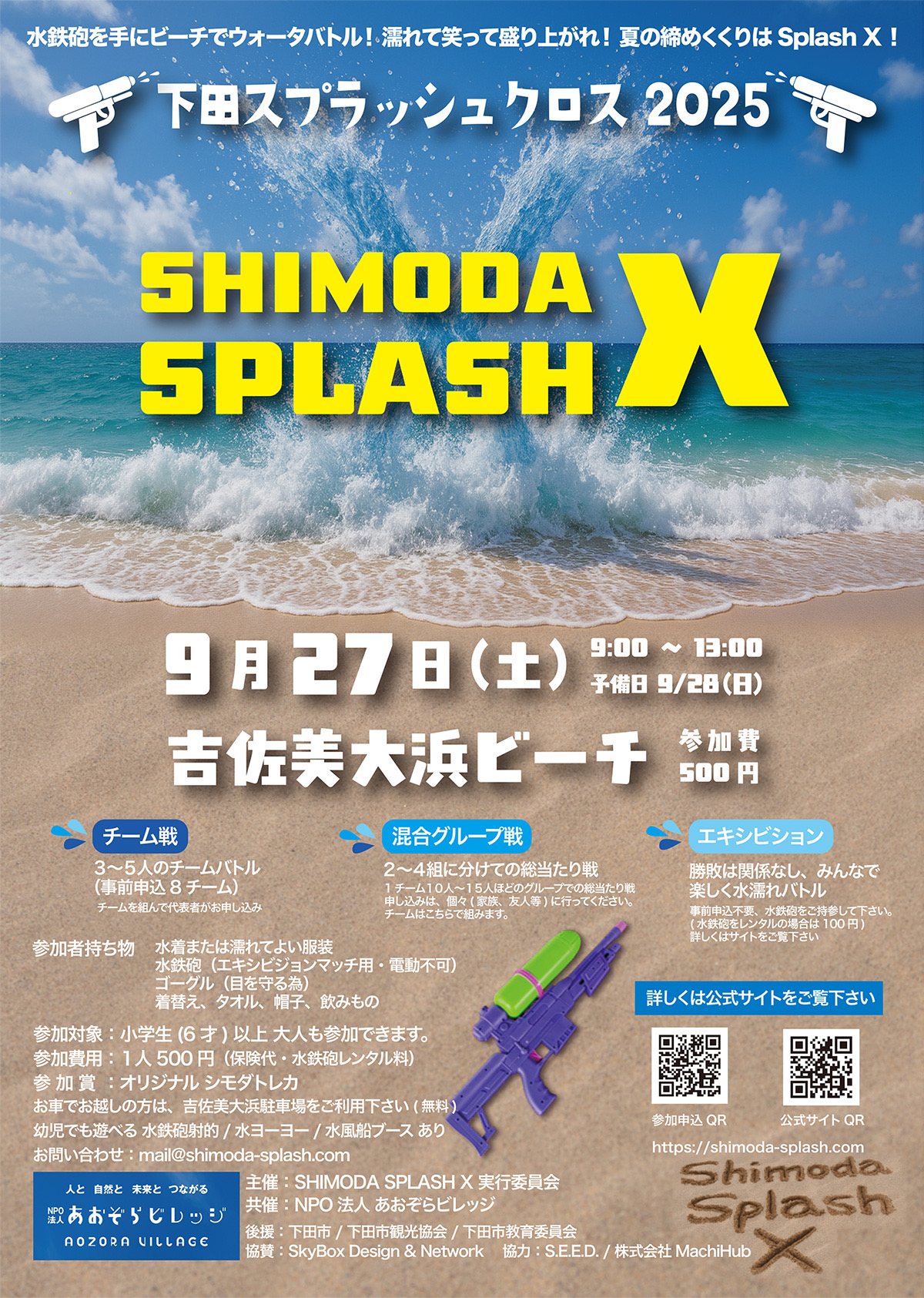 イベントの詳細や参加のお申し込みは、「SHIMODA SPLASH X」のHPよりお願い致します。