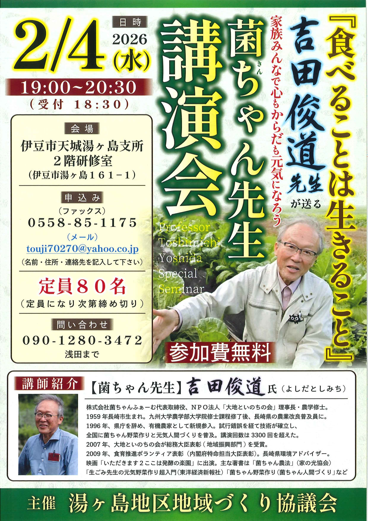 - 2/4 菌ちゃん先生講演会「食べることは生きること」【伊豆市】