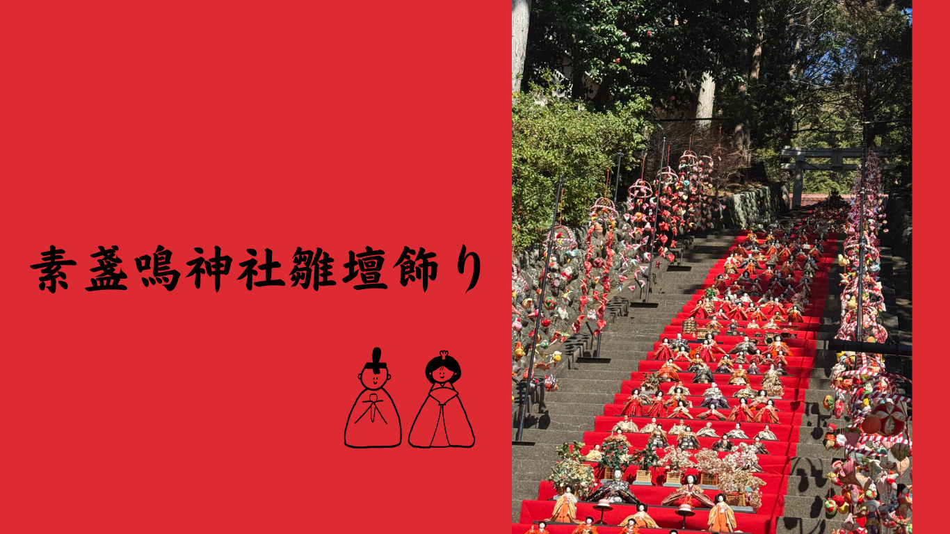 素戔嗚神社の118段の階段に雛人形とつるし飾りを展示します。段数は日本一!(雨天中止)