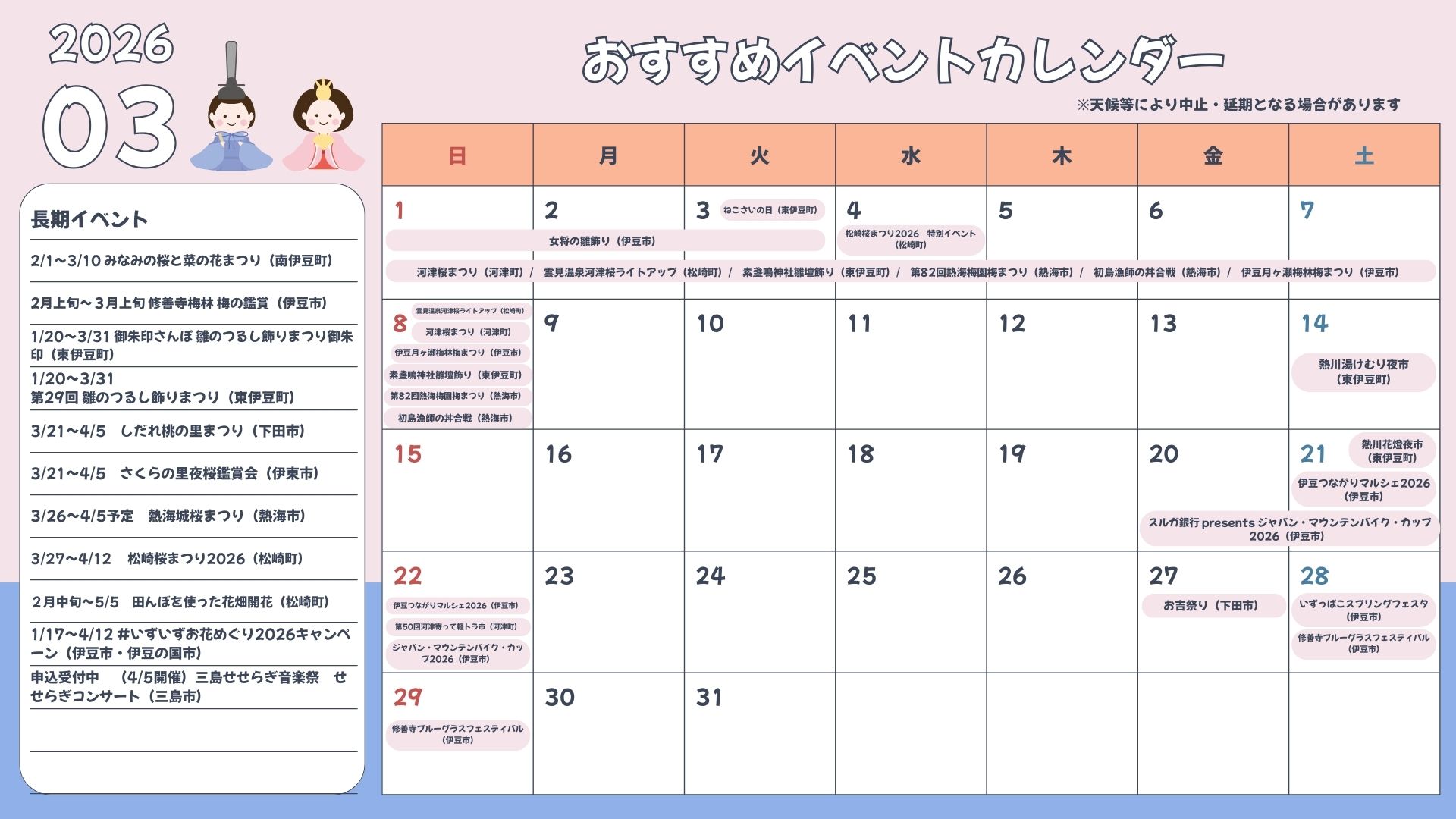 - 3/28 いずっぱこスプリングフェスタ【伊豆市】