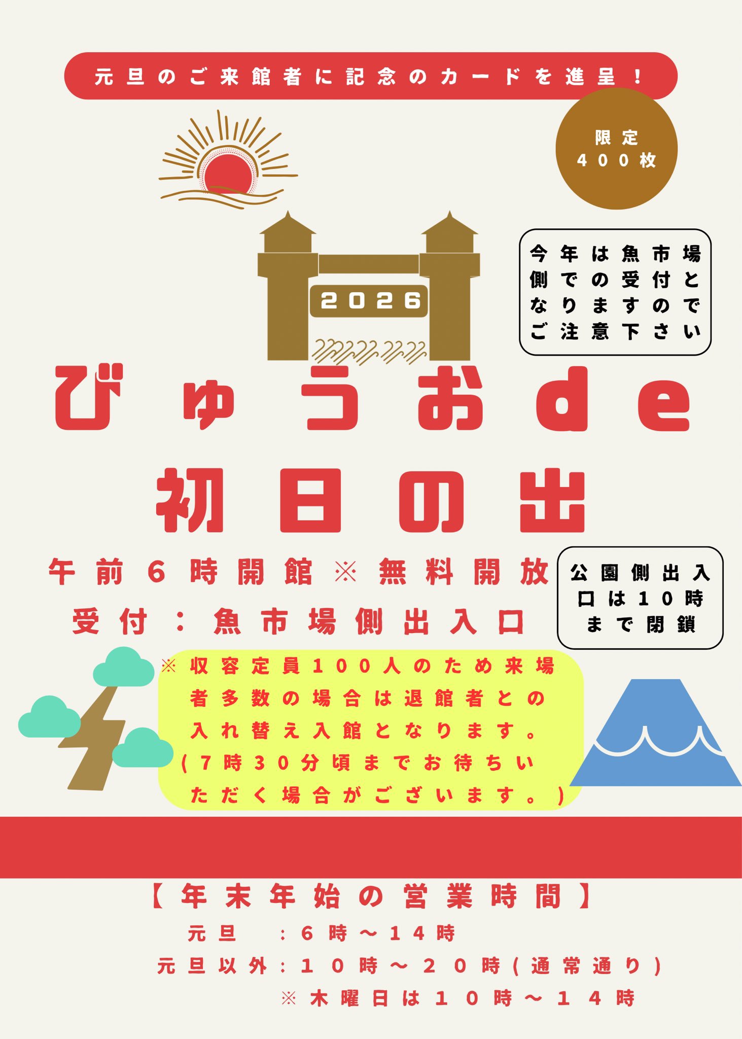 数量限定の記念カードももらえる、初日の出をびゅうおから!